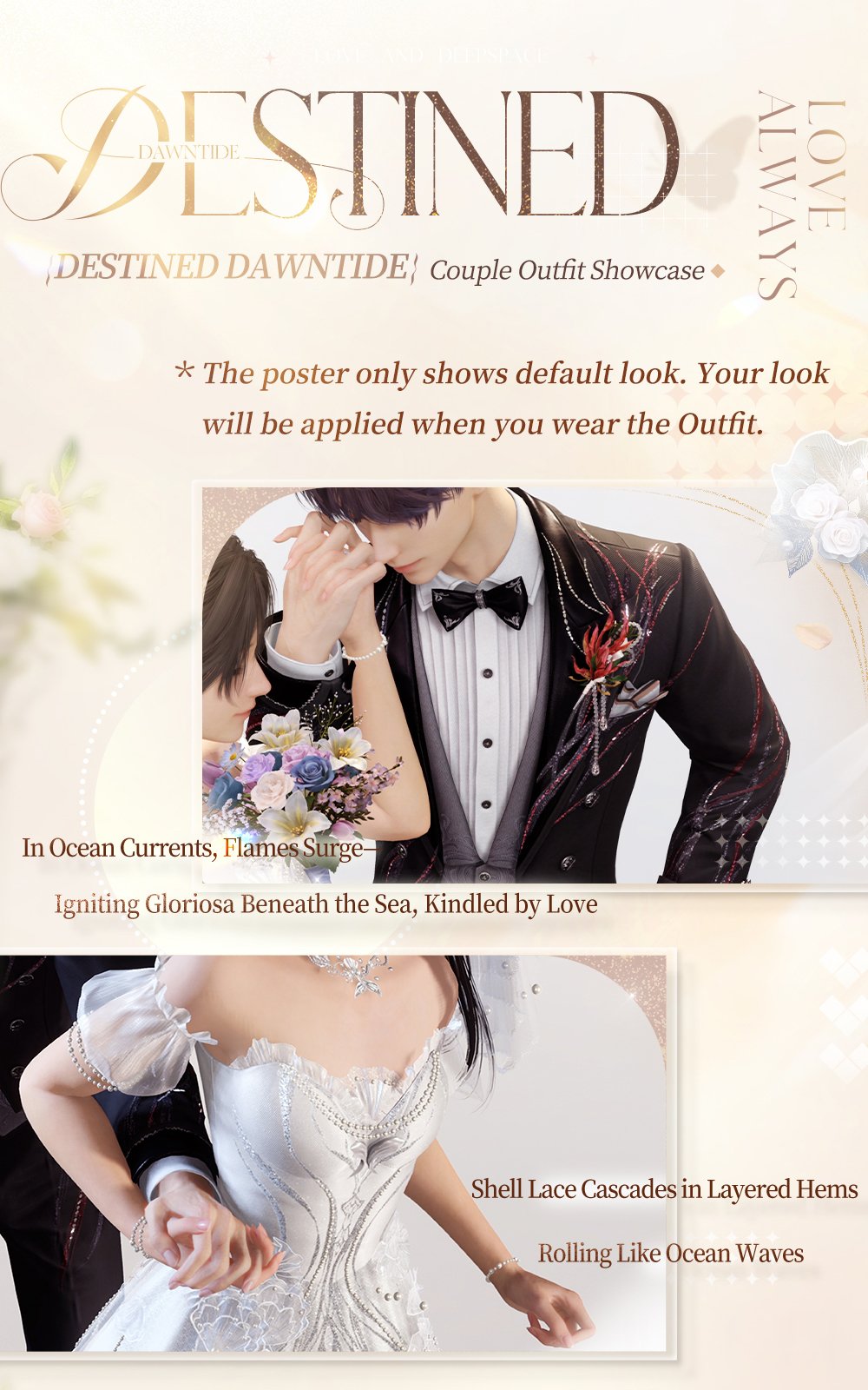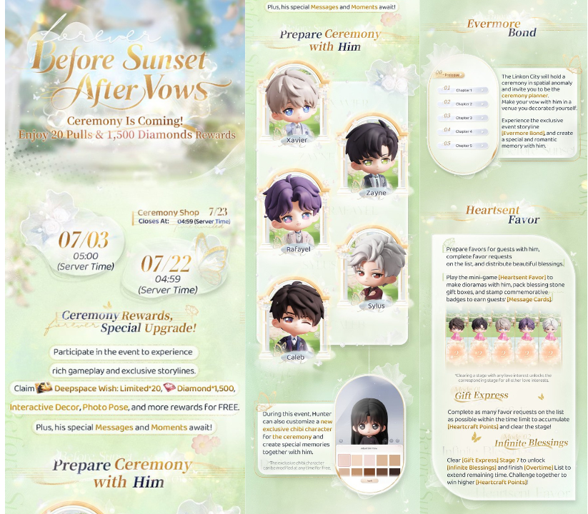As a veteran otome player a wedding always meant end of the story which I had been living for days ,creating my own universe and deciding how my MC live out her story line . Love and Deepspace added a new perspective to my limited imagination regarding the wedding of my most loved character in an otome game ,my MC .I am so excited for this banner and how all this event will let MC live the dream of getting married to her Love Interest .